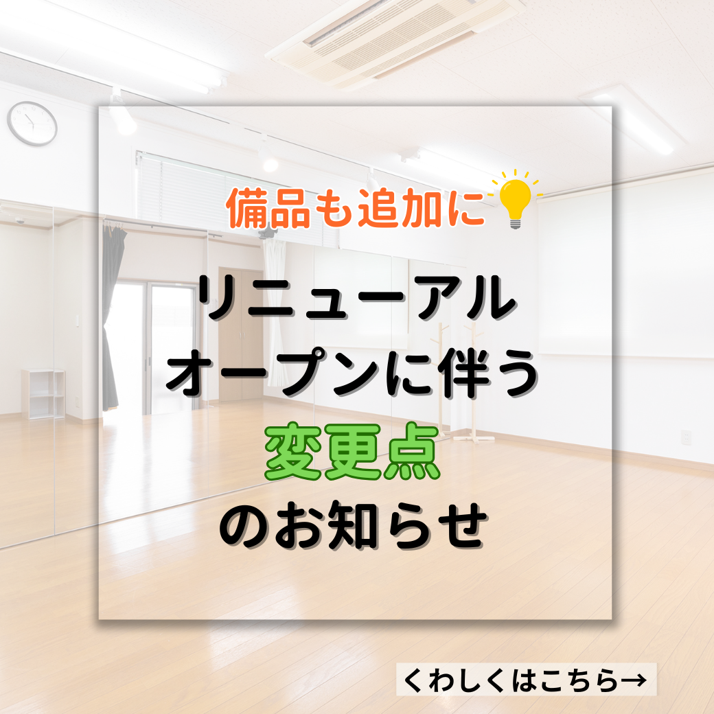 【備品も追加に!】リニューアルオープンに伴う変更点のお知らせ